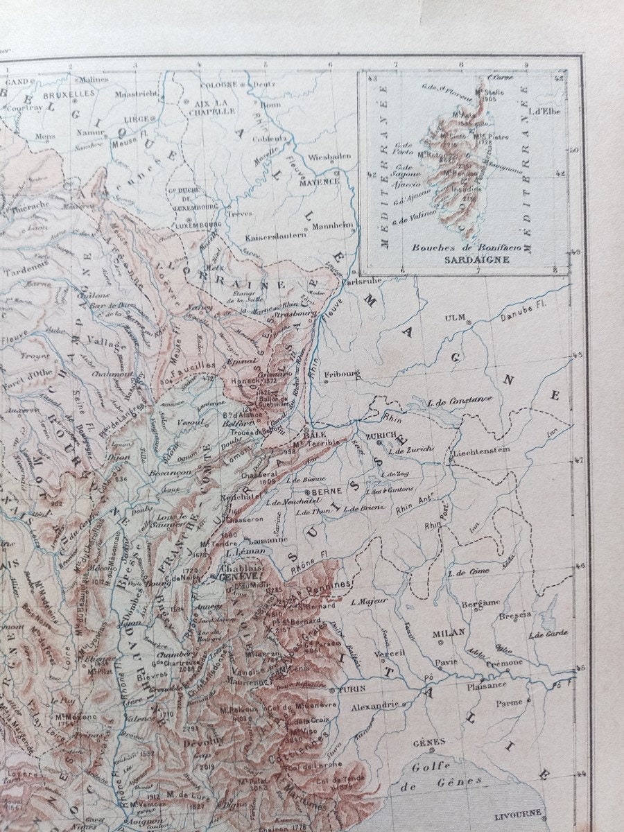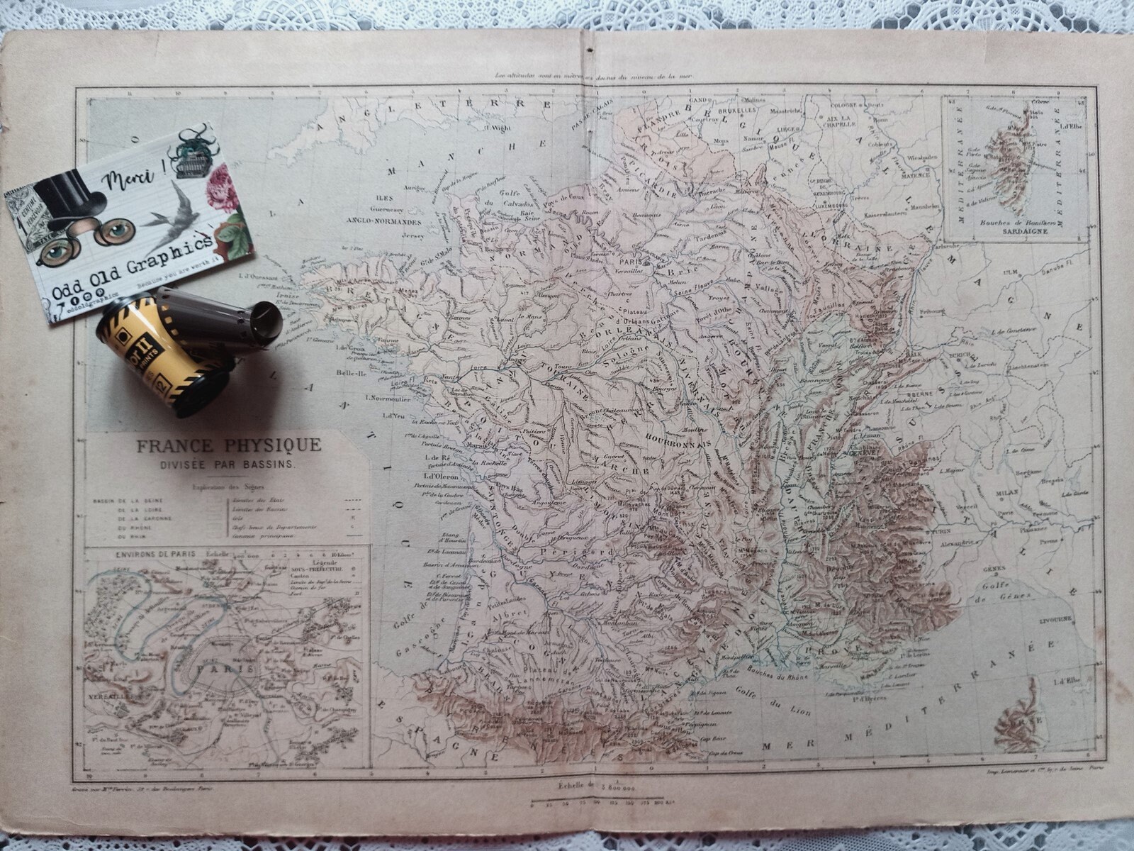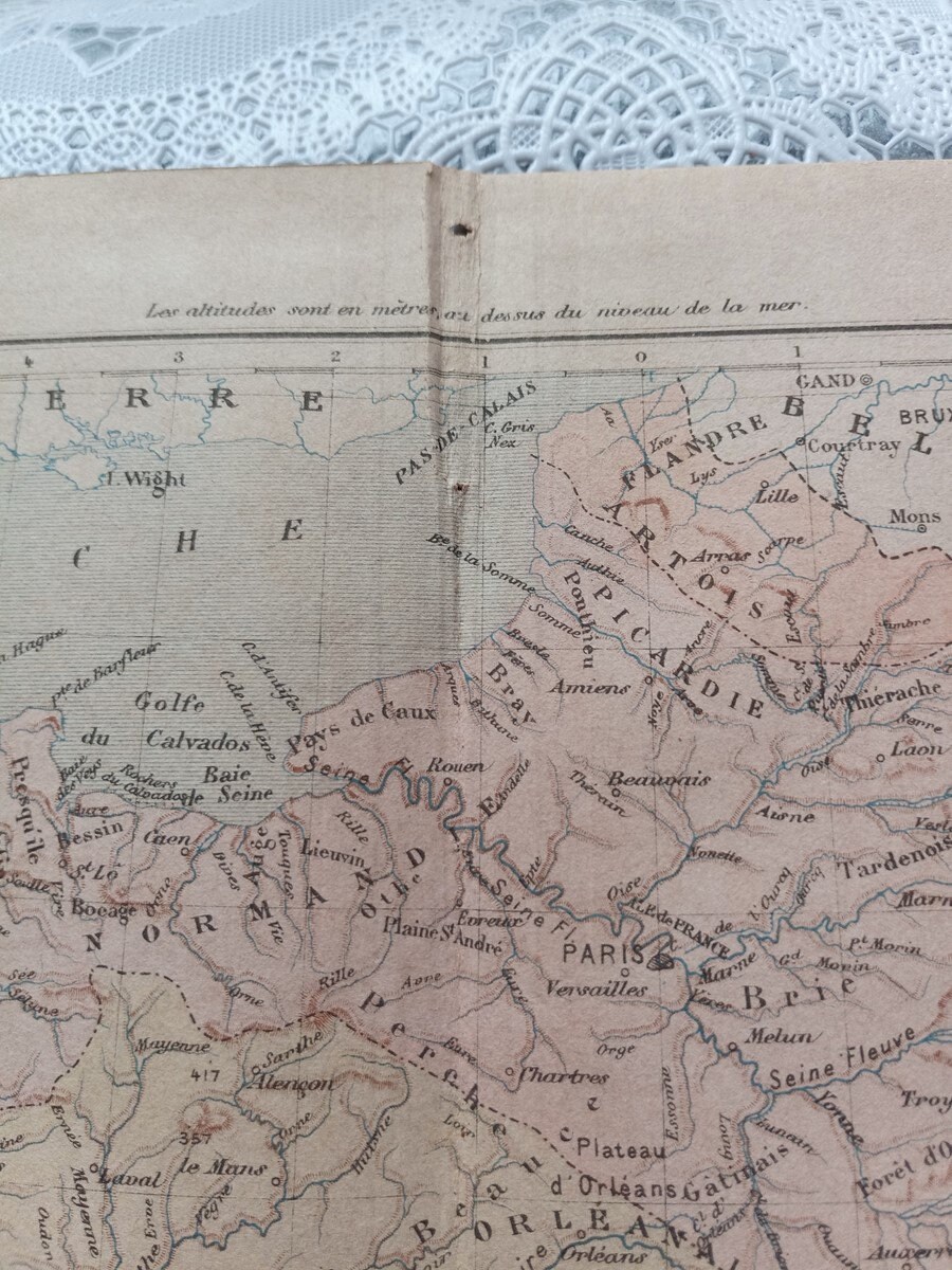 Authentic vintage map late 1800's, in French, beautiful pate, minor flaws for its age, see photos (tears, small stains that add the charm of the old). The paper is thick and of a nice beige color, it will be perfect framed.